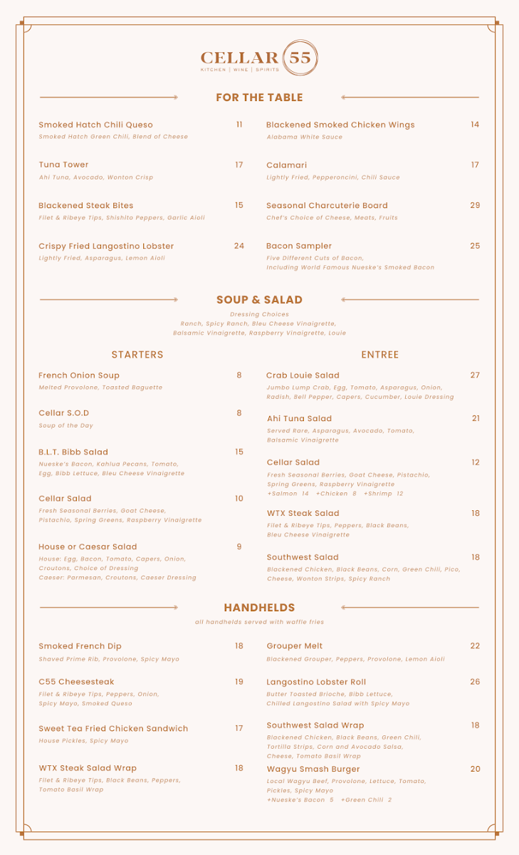 Welcome to Cellar 55, a culinary gem located in Amarillo, Texas. Since its opening in May 2024, Cellar 55 has quickly established itself as a go-to dining destination, captivating guests with its inviting ambiance and exquisite menu.